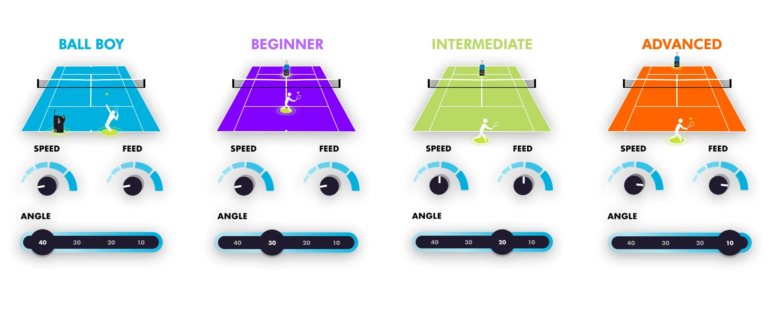 - Launcher has a variable ball feed frequency between 2 and 7 seconds. Giving the player the ability to run a variety of drills.