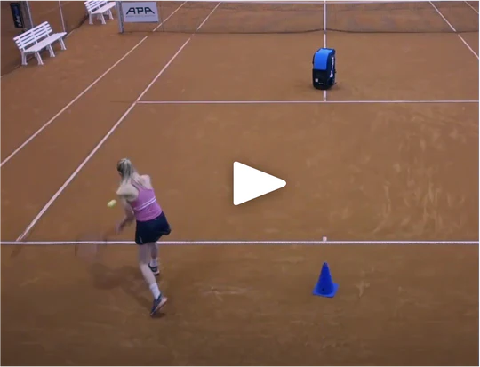 Moving forward to meet the ball, alternate forehand approach shots cross court and down the line. Focus on the movement forward and the recovery back to the baseline.